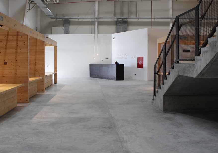 Industrial elements and raw materials bring the experience of nature into the farmers market.